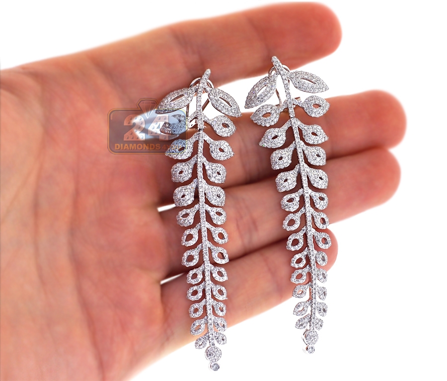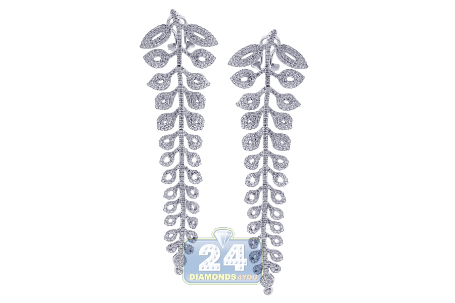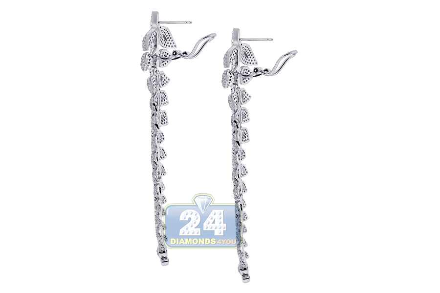 18K White Gold 5.79 ct Diamond Womens Floral Dangle Earrings