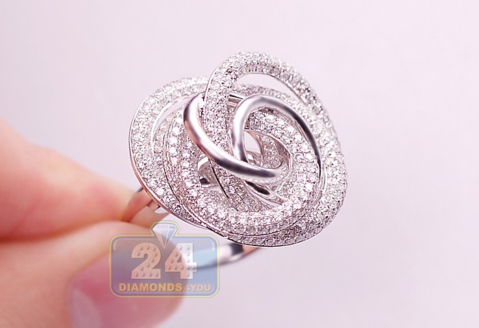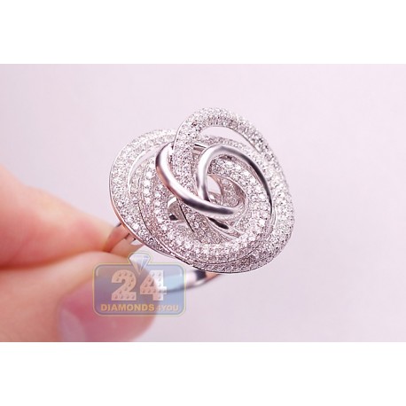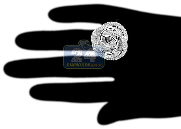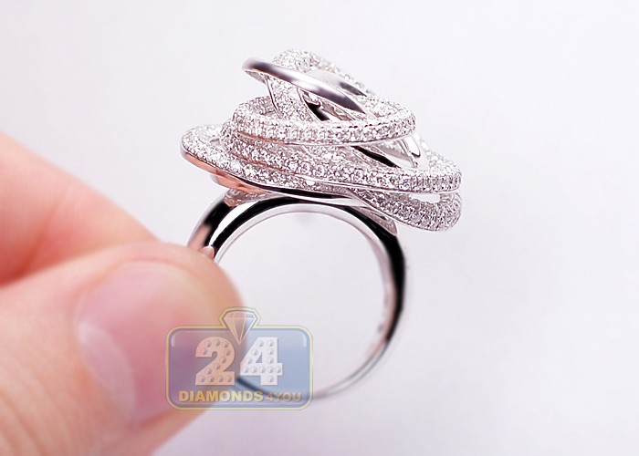 18K White Gold 5.15 ct Diamond Womens Rose Flower Ring