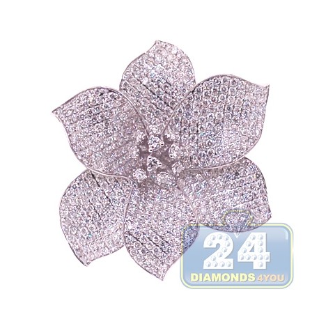 18K White Gold 5.63 ct Diamond Womens Flower Cocktail Ring