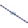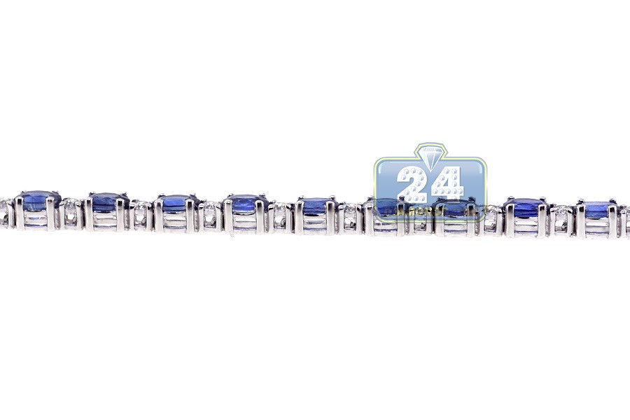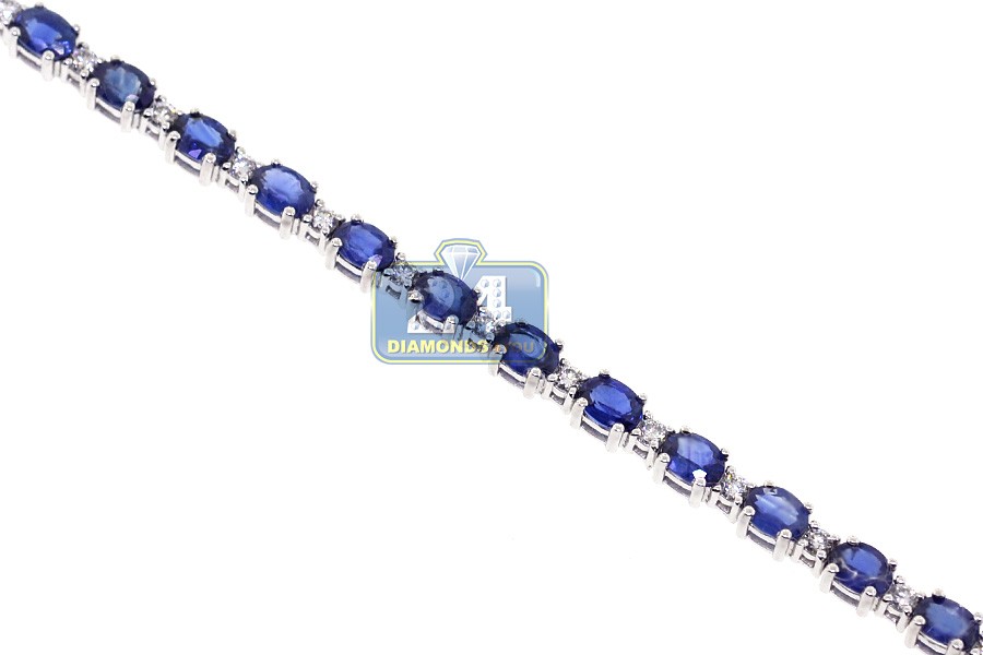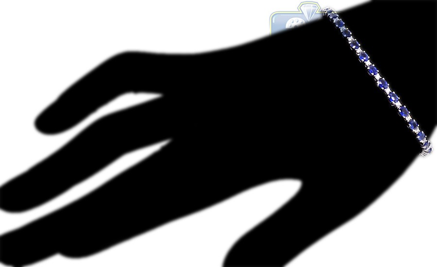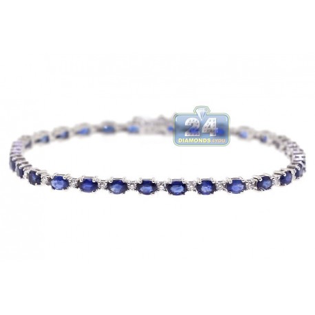 Every woman should have a classic jewelry piece like this gemstone bracelet in the wardrobe! It's lovely made of luxurious 18k white gold with highly polished rhodium finish. Our women's tennis bracelet is bedecked with 0.67 carat of icy white round-cut diamonds and 5.25 carats of natural blue oval-cut sapphires. It also measures 7.25 inches in length and 4 mm in width. This magnificent blue sapphire bracelet is the perfect choice for any occasions!