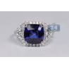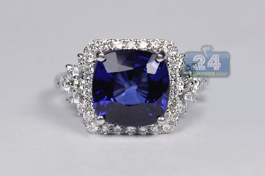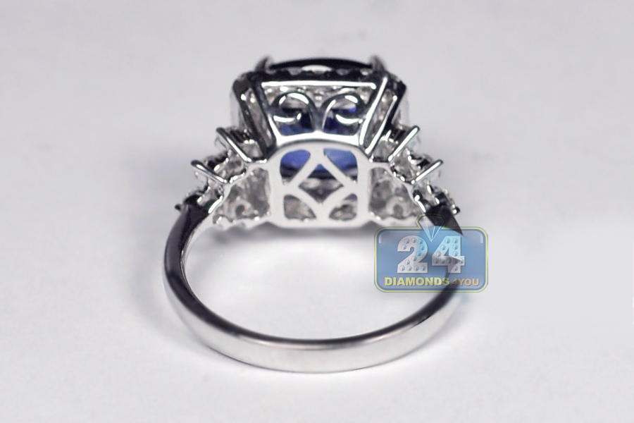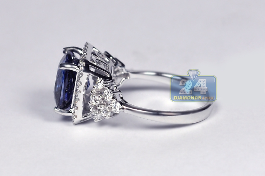 18K White Gold 6.08 ct Blue Sapphire Diamond Womens Ring