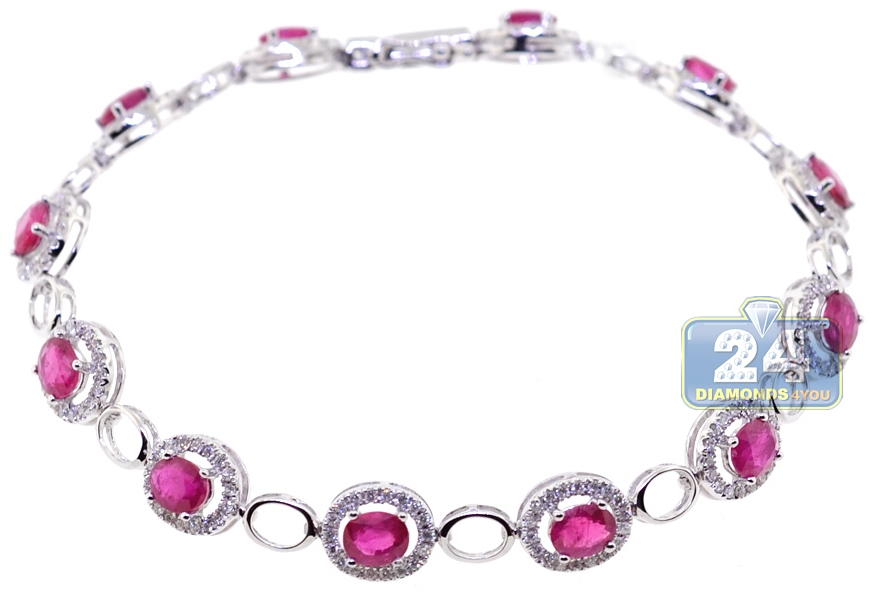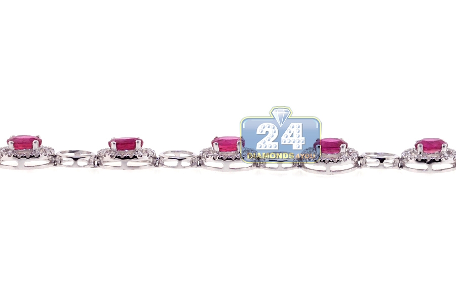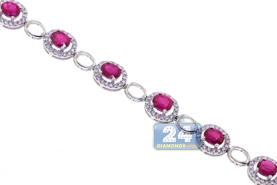 18K White Gold 6.15 ct Ruby Diamond Womens Halo Bracelet