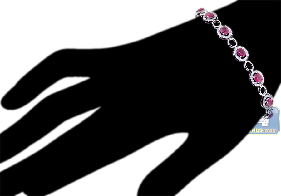 With this adorable ruby diamond bracelet you will feel like a royalty! It's professionally handmade of luxurious 18k white gold with high-polished smooth finish. Our women's gemstone bracelet is amazed with 5.23 carats of genuine oval-cut rubies and 0.92 carat of icy white round brilliant-cut diamonds. The piece has length of 7.25 inches and width of 7.5 mm. You will be thrilled with glamorous presence of this gemstone wrist bracelet!