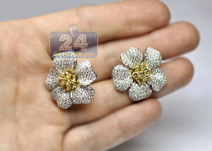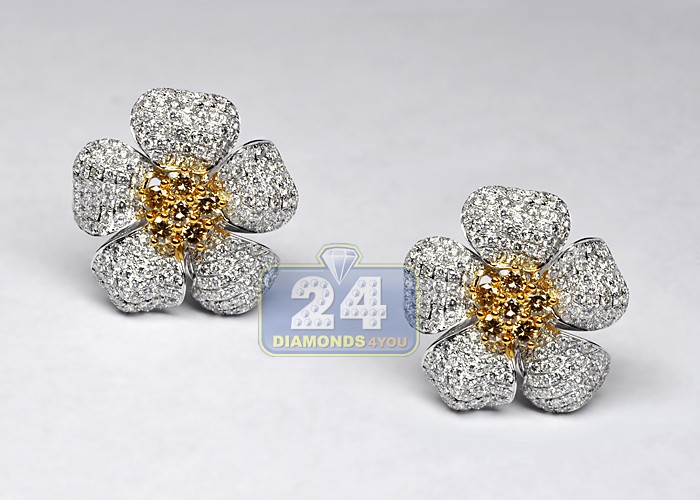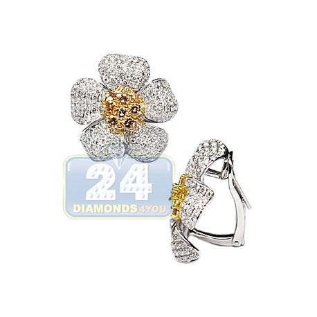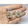 18K White Gold 6.61 ct Fancy Diamond Womens Flower Earrings