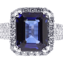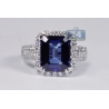 18K White Gold 7.43 ct Blue Sapphire Diamond Womens Ring