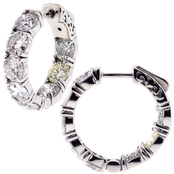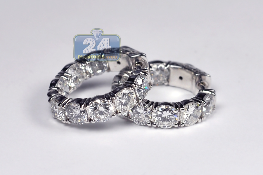 18K White Gold 7.50 ct Diamond Womens Round Hoop Earrings