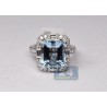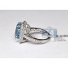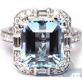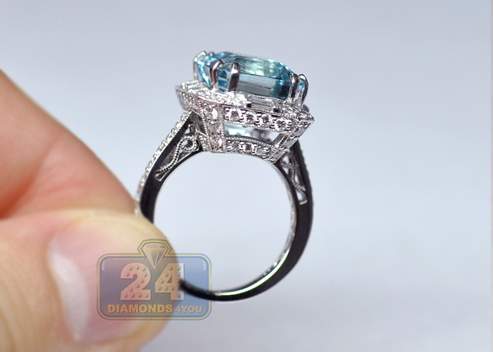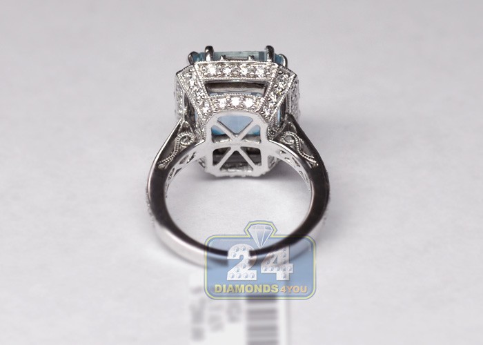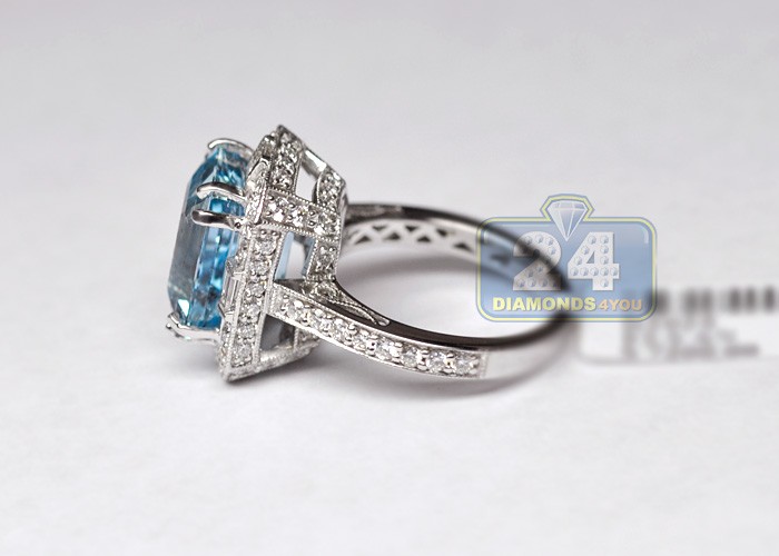 18K White Gold 7.66 ct Blue Topaz Diamond Vintage Cocktail Ring
