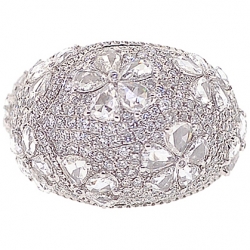 18K White Gold 7.40 ct Rose Cut Diamond Flower Dome Ring