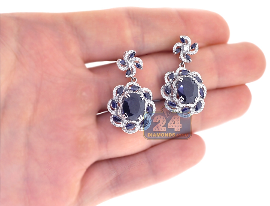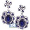 18K White Gold 8.73 ct Blue Sapphire Diamond Womens Earrings