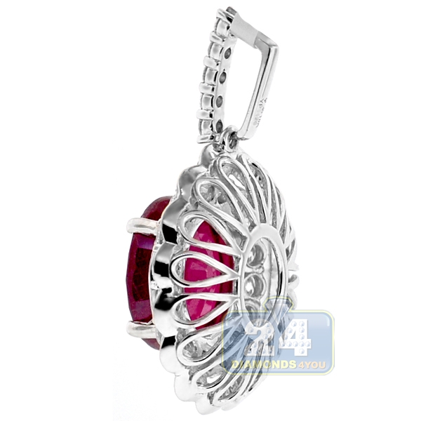 18K White Gold 8.75 ct Ruby Diamond Womens Drop Pendant