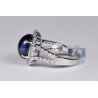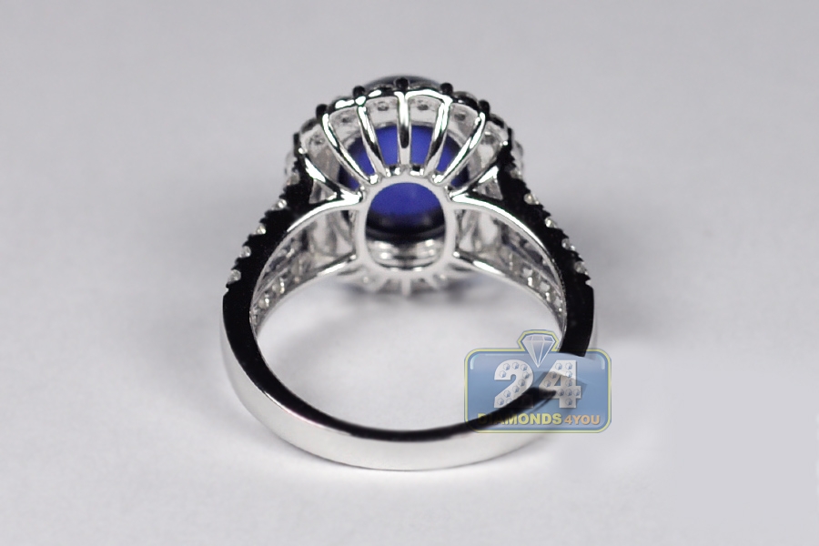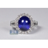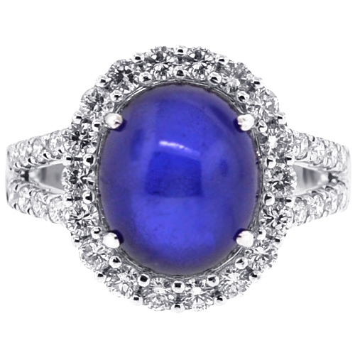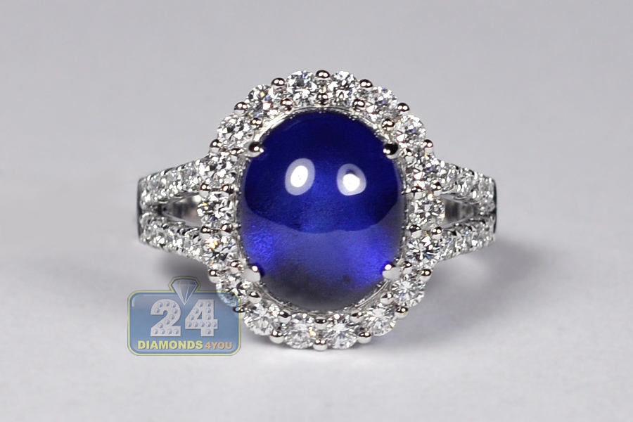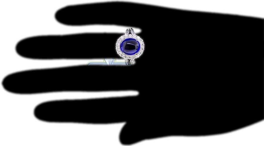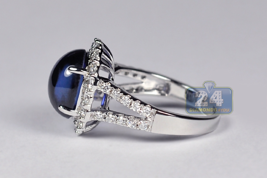 18K White Gold 9.08 ct Cabochon Sapphire Diamond Halo Ring