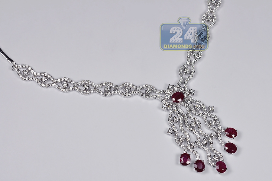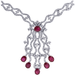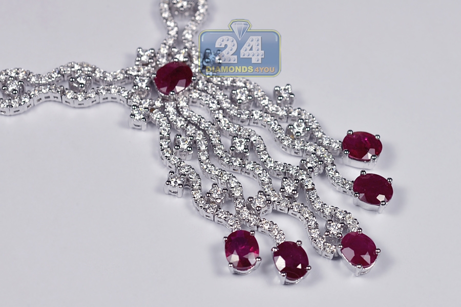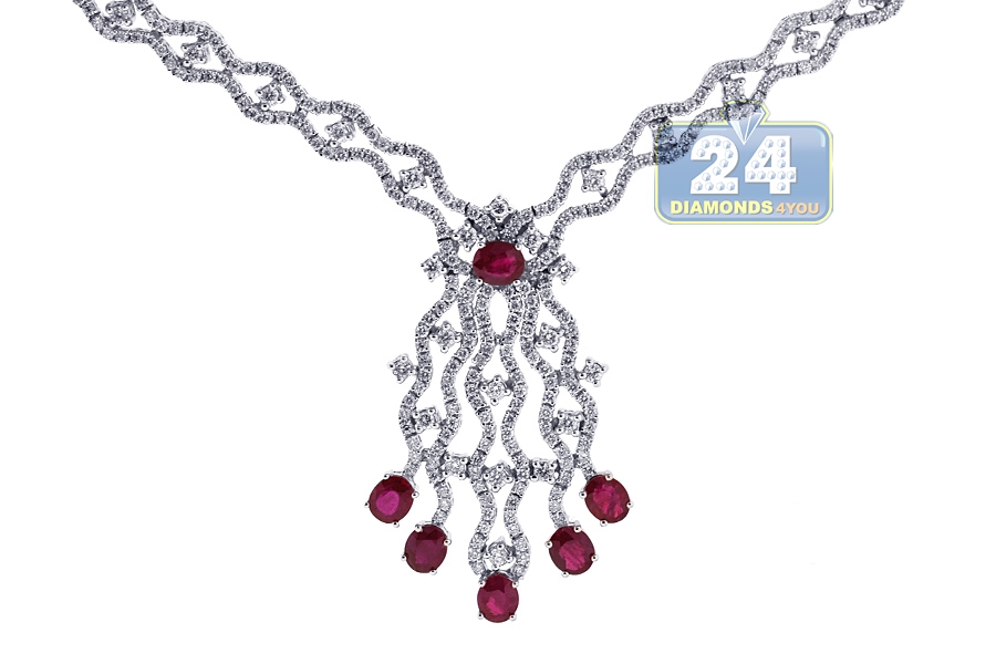 18K White Gold 9.42 ct Ruby Diamond Womens Necklace 18 Inches