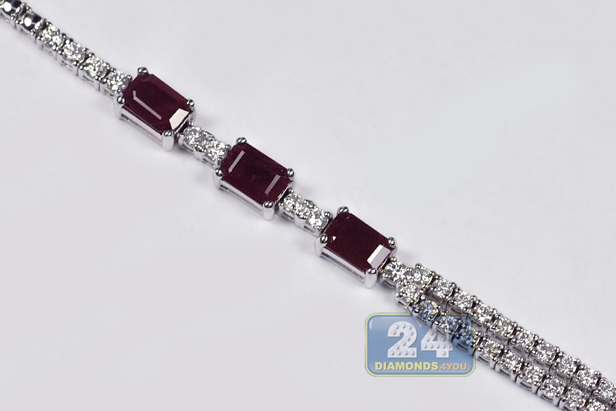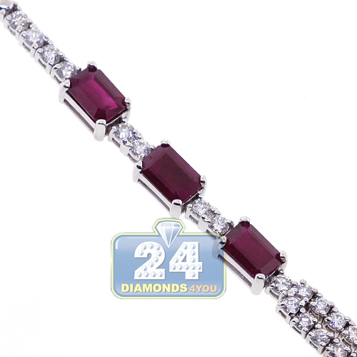 An exquisite choice for a sophisticated lady is featured by our ruby diamond tennis necklace! Professionally created from lustrous 18k white gold, it's accurately polished for ultra shiny look. The layered tennis necklace is encrusted with 4.32 carats of radiant-cut natural rubies that highlighted by 5.12 carats of sparkling white round brilliant-cut diamonds. This women's gemstone necklace has length of 16.5 inches, and its width varies from 2.5 to 5 mm. The jewelry piece is secured with a very safe box-with-latch clasp. Adorn your neckline with a truly spectacular look!