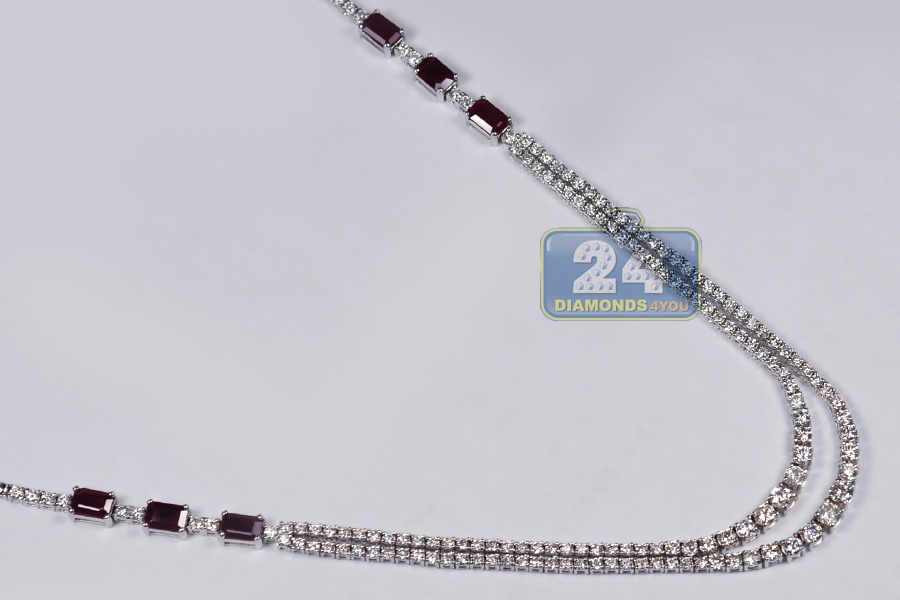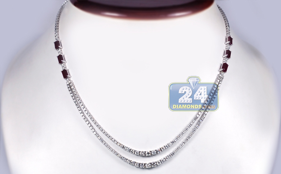 18K White Gold 9.44 ct Diamond Ruby Layered Womens Necklace