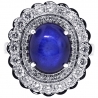18K White Gold 9.58 ct Cabochon Sapphire Diamond Flower Ring