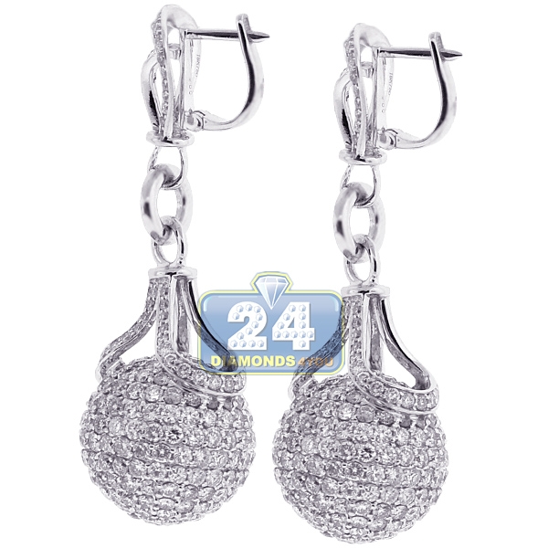 18K White Gold 9.91 ct Diamond Ball Womens Drop Earrings