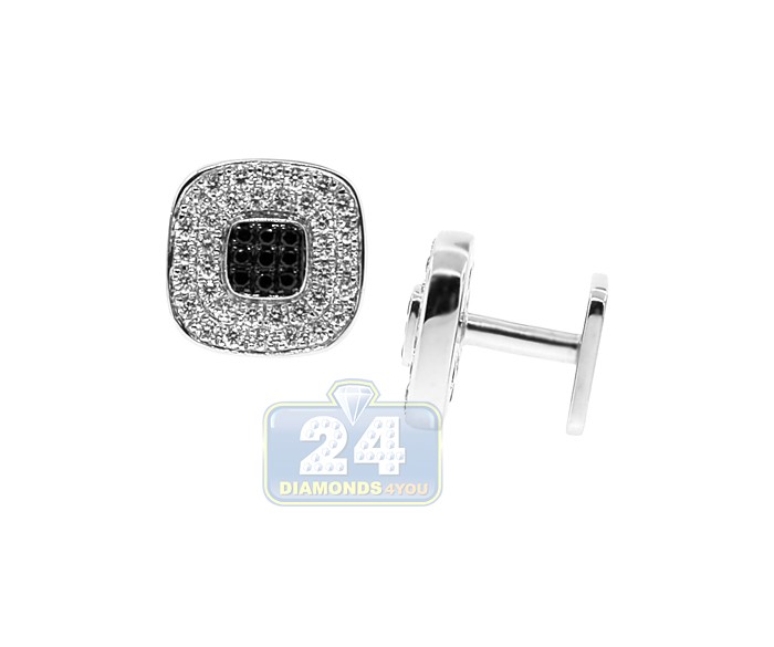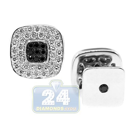 Stylish and perfectly handcrafted, these square shaped white gold cuff links feature nine magnificent black diamonds in the center that are framed by icy white diamonds on sides. The cuff links are handmade in lustrous 18k white gold and polished to the perfection. Make a great addition to your wardrobe with this handsome white gold diamond cuff links! Featured 18k white gold 2.11 ct mixed diamond square mens cuff links are manufactured according to the highest jewelry standards by professionals with over 20 years of experience in the industry. The cuff links have approximately 2.11 carats total weight of diamonds, F-G color, VS1-VS2 clarity and weight 19.74 grams, 1/2 inches width of the single cuff link. This set of jewelry comes with a detailed certificate/appraisal.