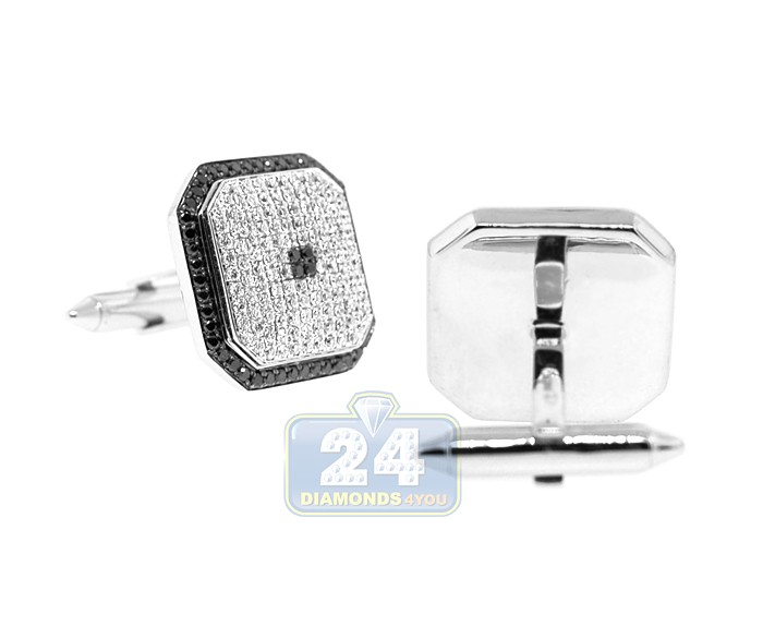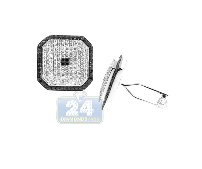 Looking for elegant, exclusive cuff links to wear on special events? If so, this piece is handmade for you! Lustrous 18k white gold polished to the perfection, glittering white diamonds are adorned by 4 black diamonds in the center and framed by sparkling chain of black diamonds... Luxurious accessory for a man who appreciates top quality things in life! Featuring 18k white gold 2.60 ct mixed diamond square men's cuff links are manufactured according to the highest jewelry standards by professionals with over 20 years of experience in the industry. The cuff links have approximately 2.60 carats total weight of diamonds, F-G color, VS1-VS2 clarity and weight 14.80 grams, 3/4 inches width of the single cuff link.