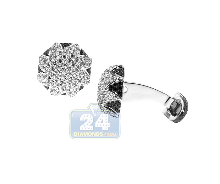 These luxurious white gold diamond cuff links are the perfect addition to your look for any occasion! Professionally handmade in a lustrous 18k white gold, glittering star of icy white diamonds is surrounded by mysterious black diamonds to show off your exceptional taste. Amazing gift for yourself or that special men in your life! The detailed certificate/appraisal included with this pair of jewelry.