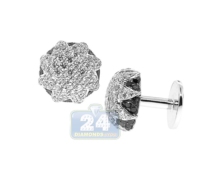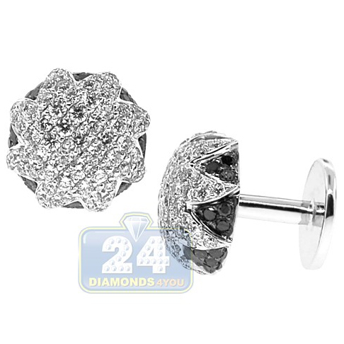 18K White Gold 3.61 ct Black Diamond Star Mens Cuff Links
