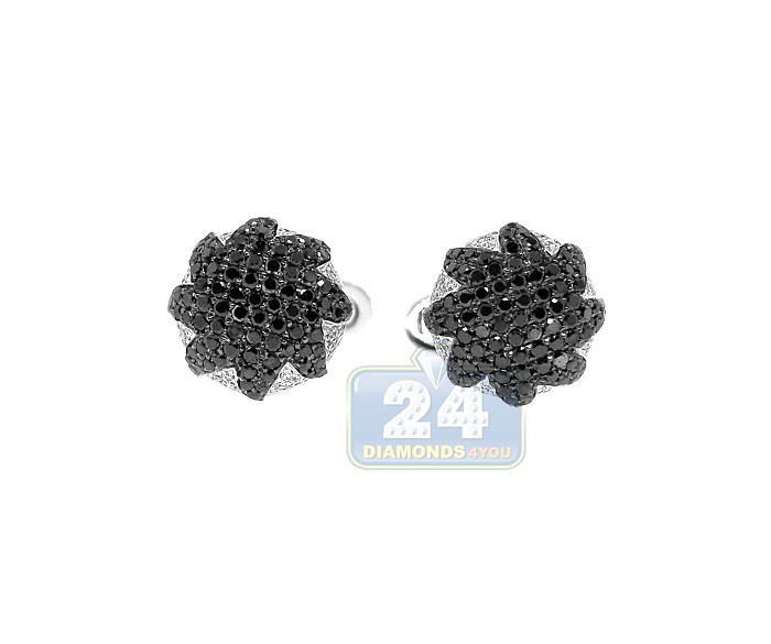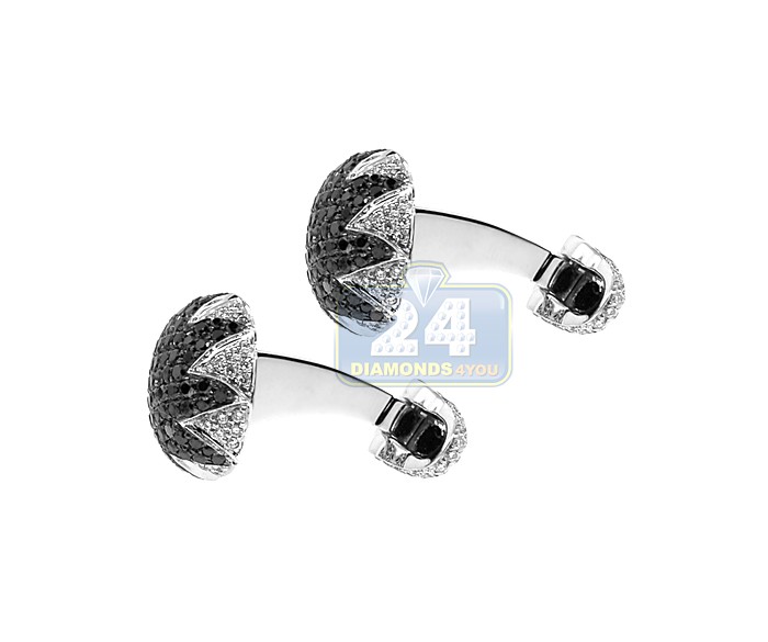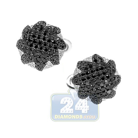18K White Gold 3.68 ct Black Diamond Star Mens Cuff Links