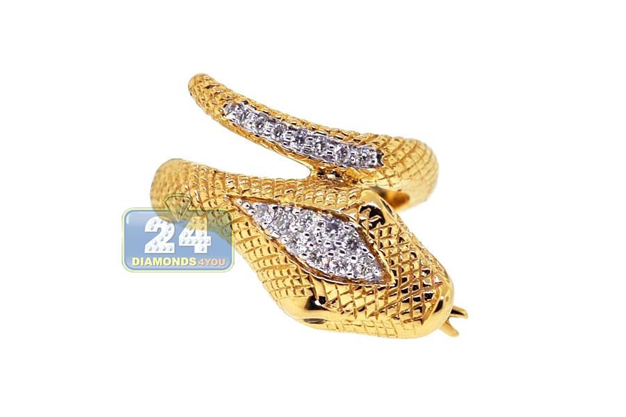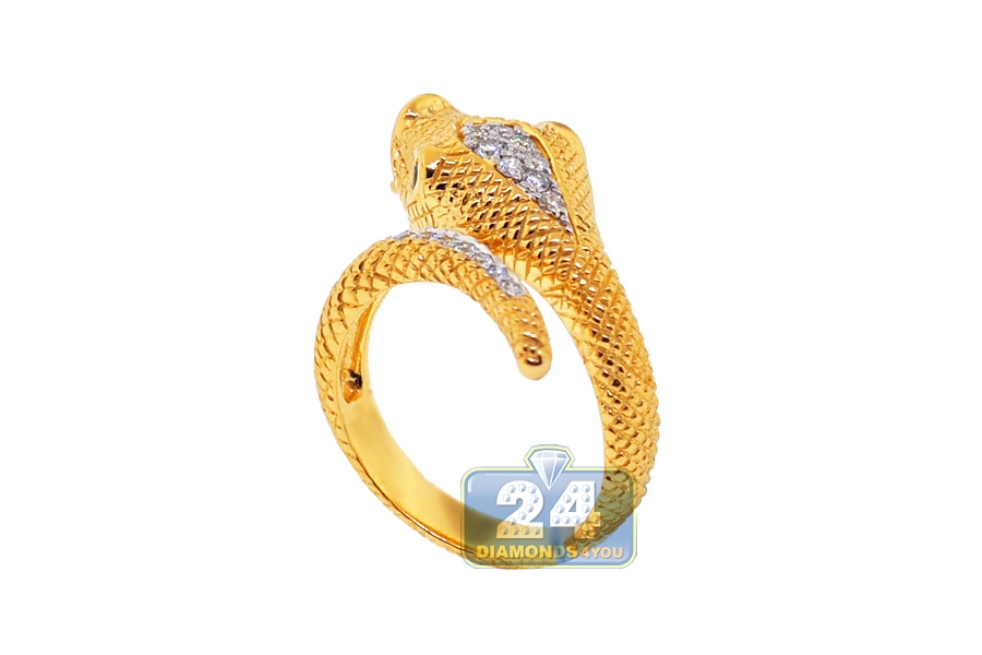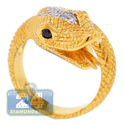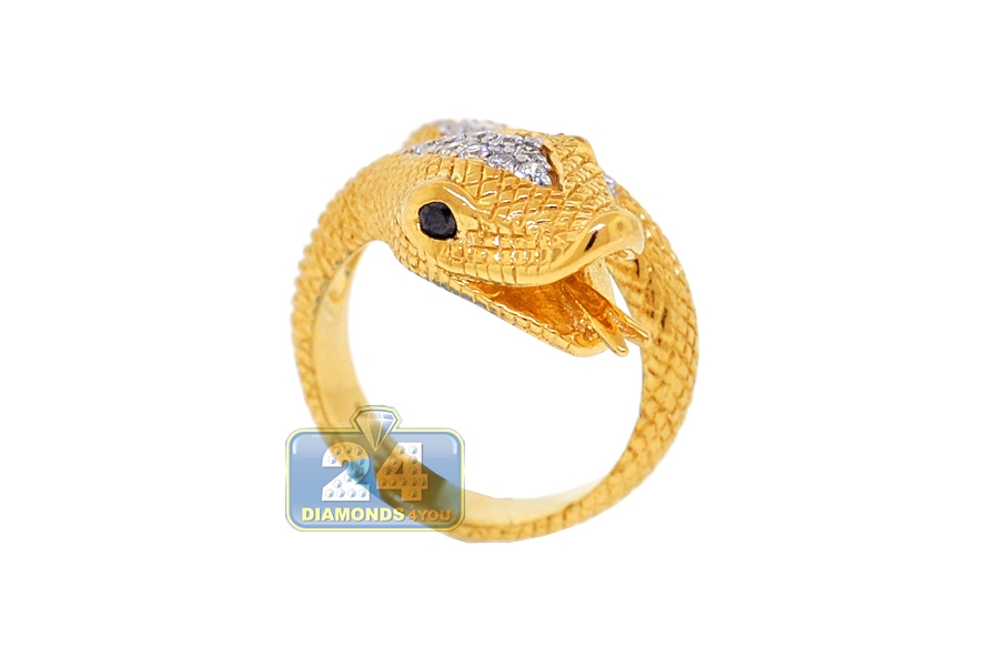 18K Yellow Gold 0.40 ct Diamond Womens Snake Head Ring