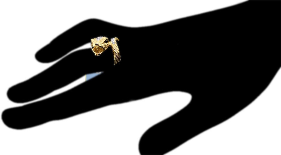 Don't worry, this diamond snake doesn't bite but it sure sparkles! Featuring unique diamond-cut finish, this ring is masterly handmade of warm 18k yellow gold; and the snake head is accented with 0.40 carat of icy white round brilliant-cut genuine diamonds. Complement your look with our stylish diamond snake ring! This jewel comes with a detailed certificate/appraisal.