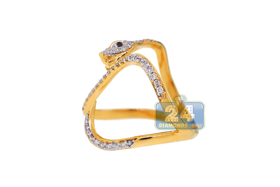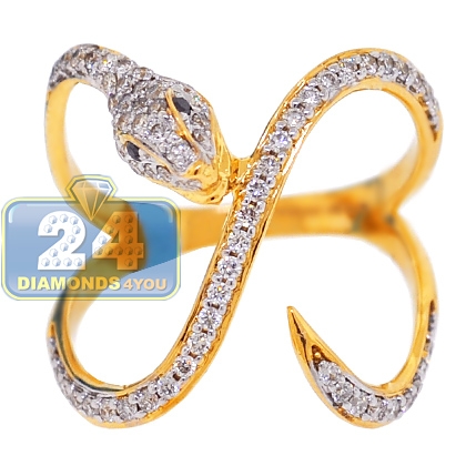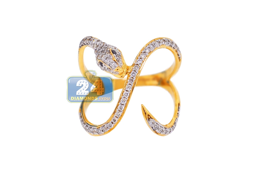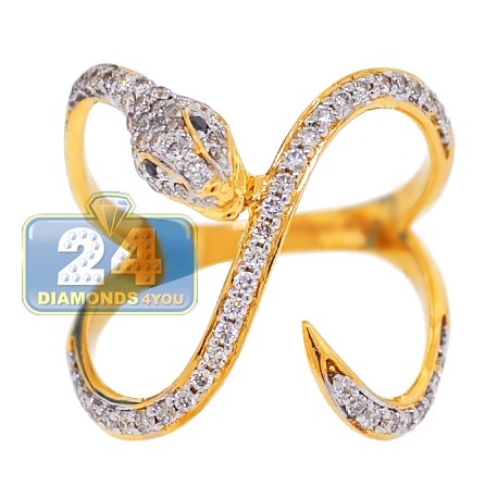 18K Yellow Gold 0.54 ct Diamond Womens Winding Snake Ring