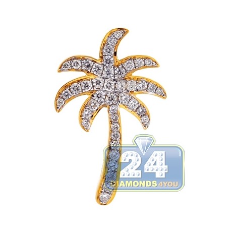 18K Yellow Gold 0.81 ct Diamond Palm Tree Womens Pendant