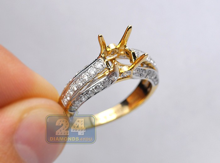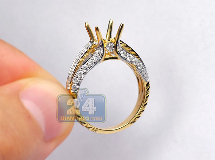 18K Yellow Gold 0.88 ct Diamond Semi Mount Engagement Ring