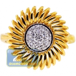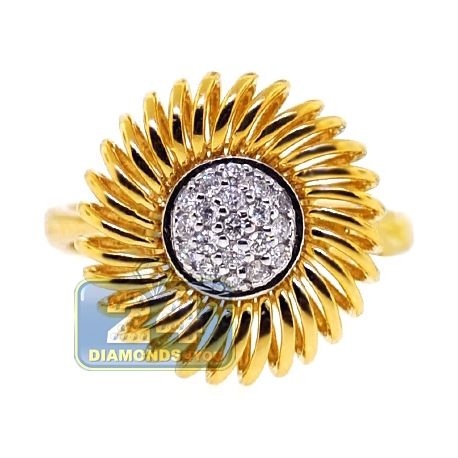 18K Yellow Gold 0.16 ct Diamond Womens Sunflower Ring