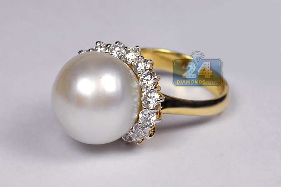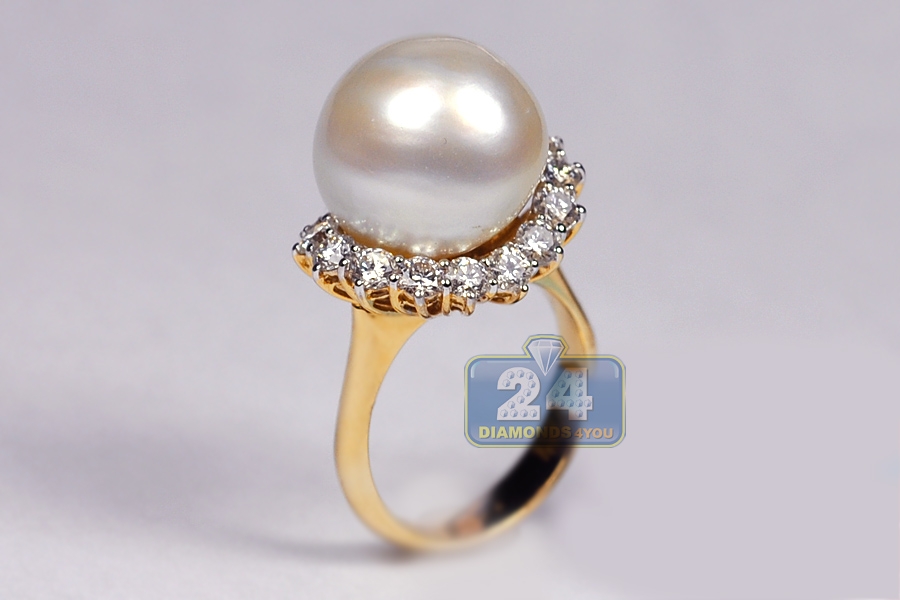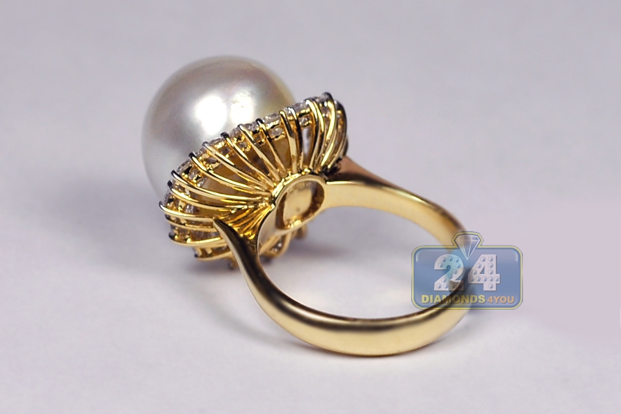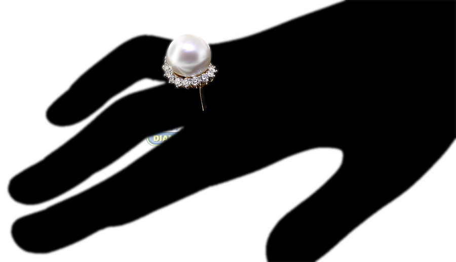 18K Yellow Gold 1.63 ct Diamond 15 mm Pearl Womens RIng