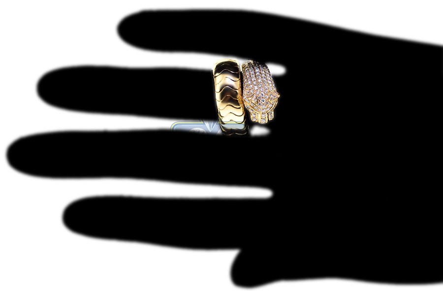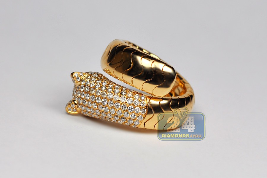 18K Yellow Gold 1.63 ct Diamond Panther Cat Wrap Ring