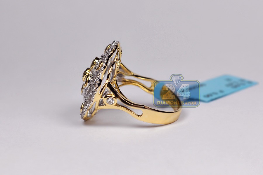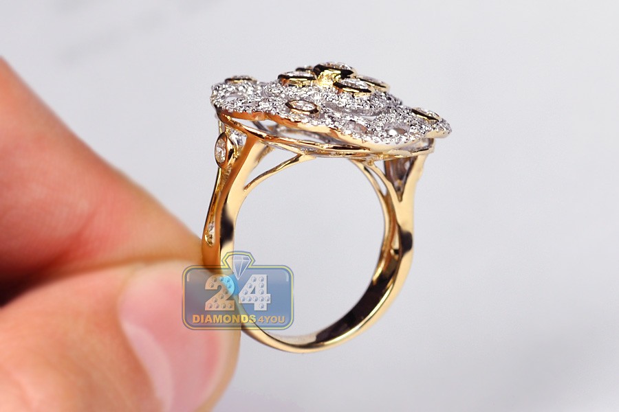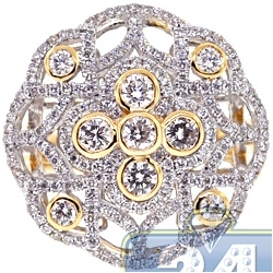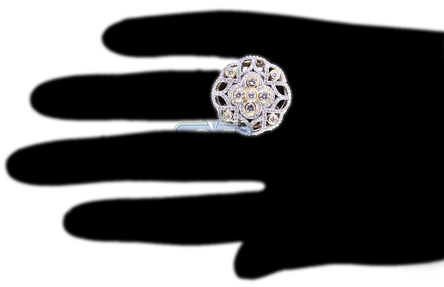 18K Yellow Gold 1.73 ct Diamond Cluster Vintage Style Ring