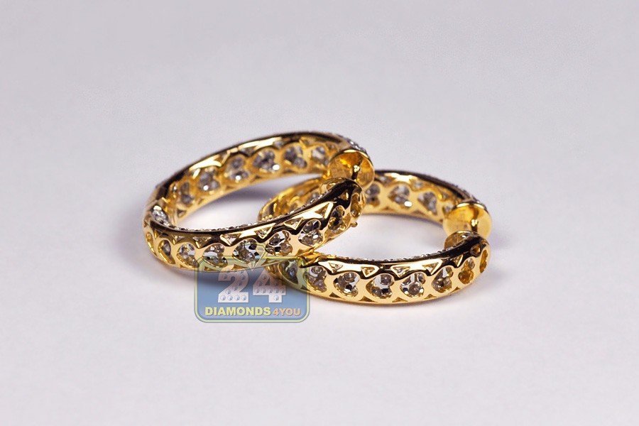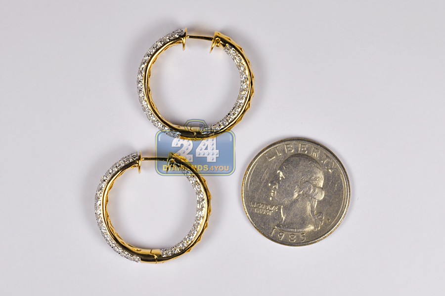 18K Yellow Gold 3.55 ct Diamond Womens Round Hoop Earrings 1 Inch