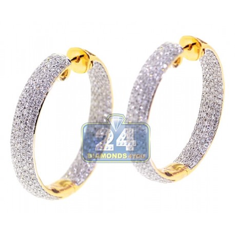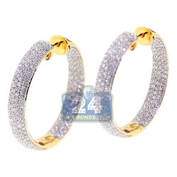 18K Yellow Gold 3.65 ct Diamond Round Hoop Earrings 1 1/4 Inch