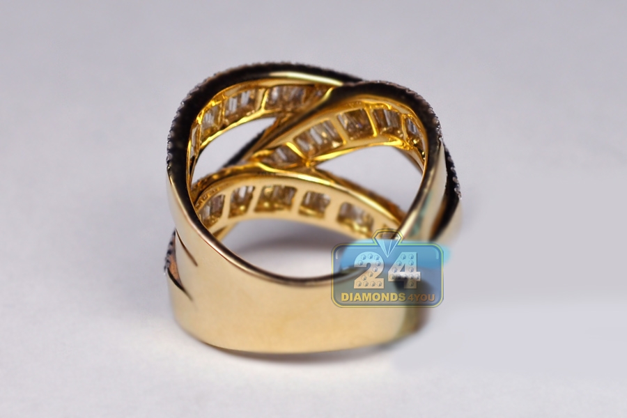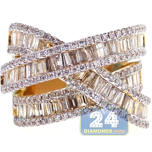 18K Yellow Gold 3.93 ct Baguette Diamond Womens Highway Ring
