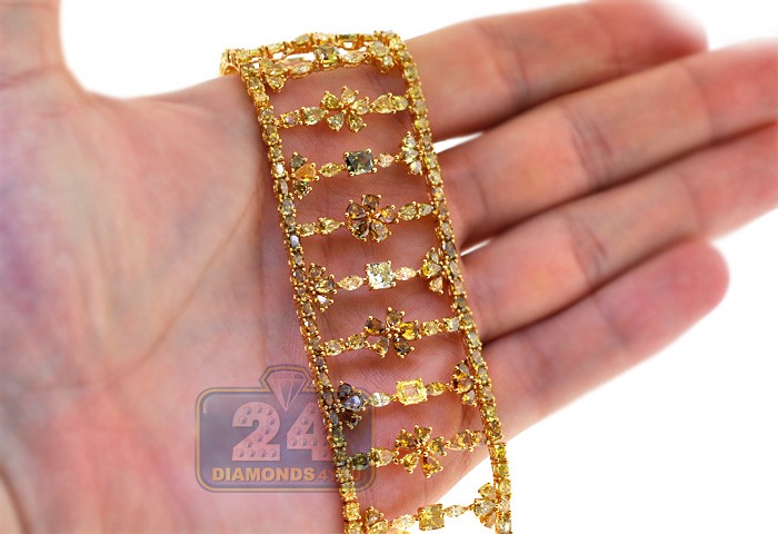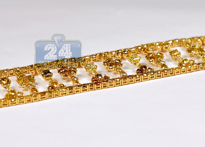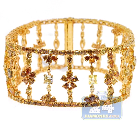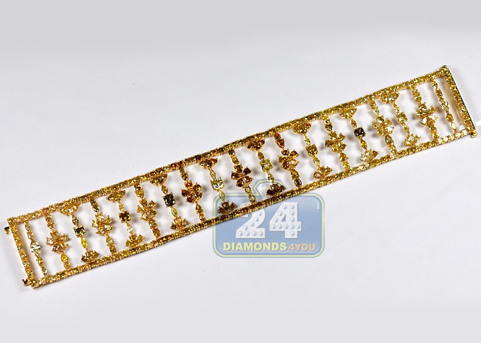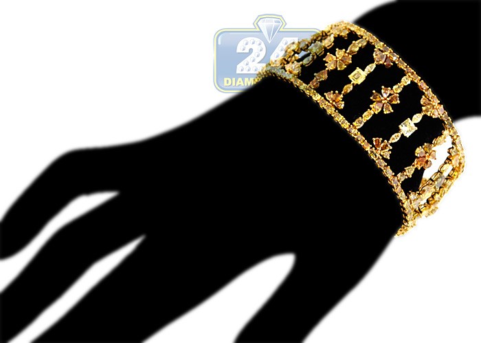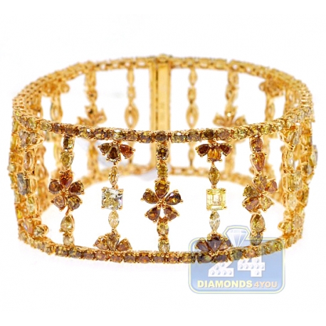 18K Yellow Gold 34.90 ct Fancy Diamond Womens Wide Bracelet