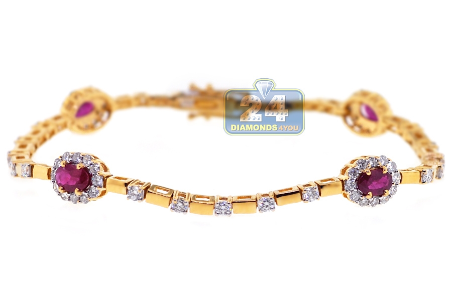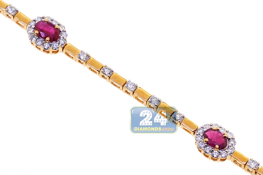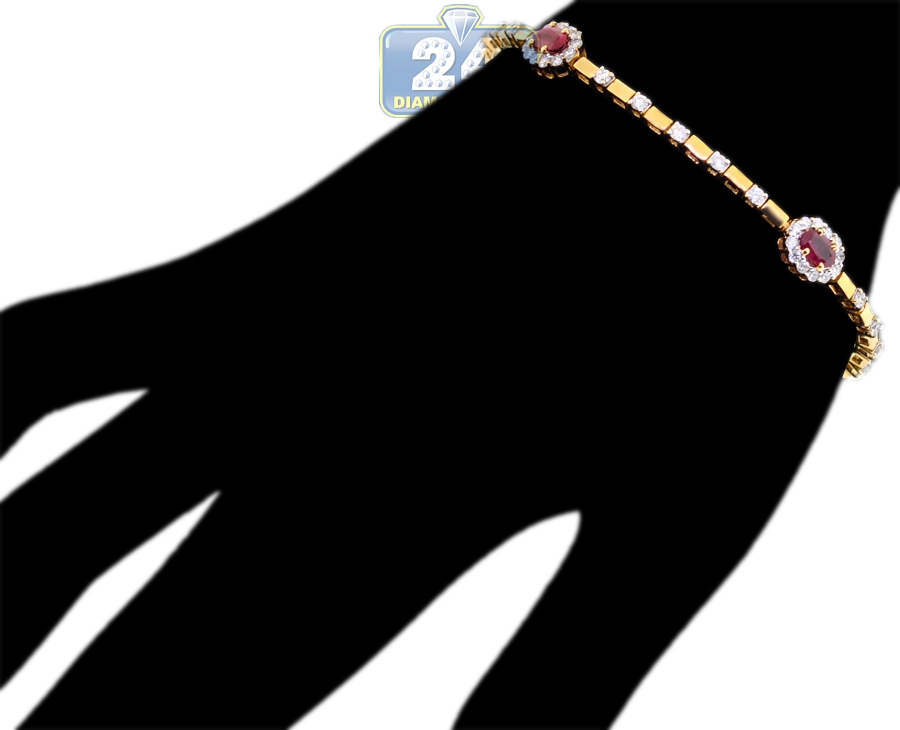 18K Yellow Gold 4.02 ct Ruby Diamond Womens Bracelet 7.5 Inches