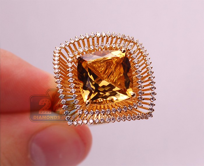 18K Yellow Gold 4.36 ct Citrine Diamond Abstract Cocktail Ring