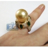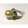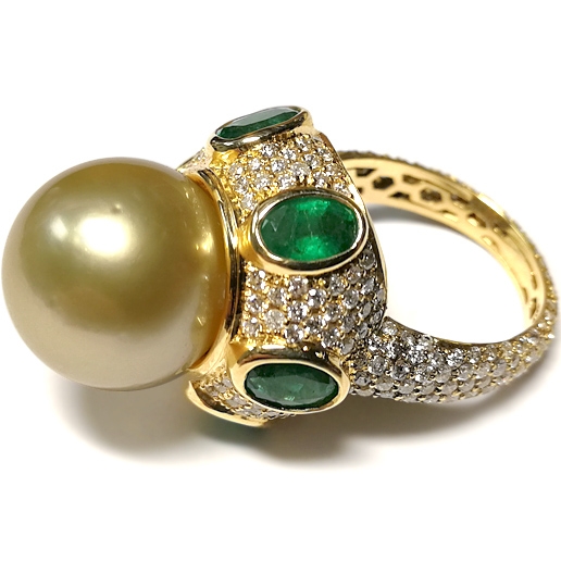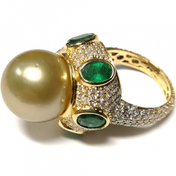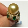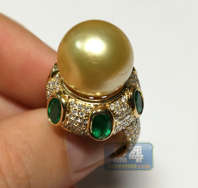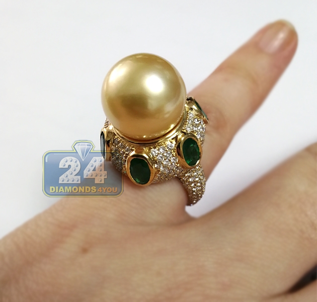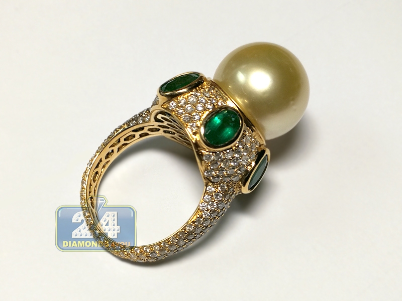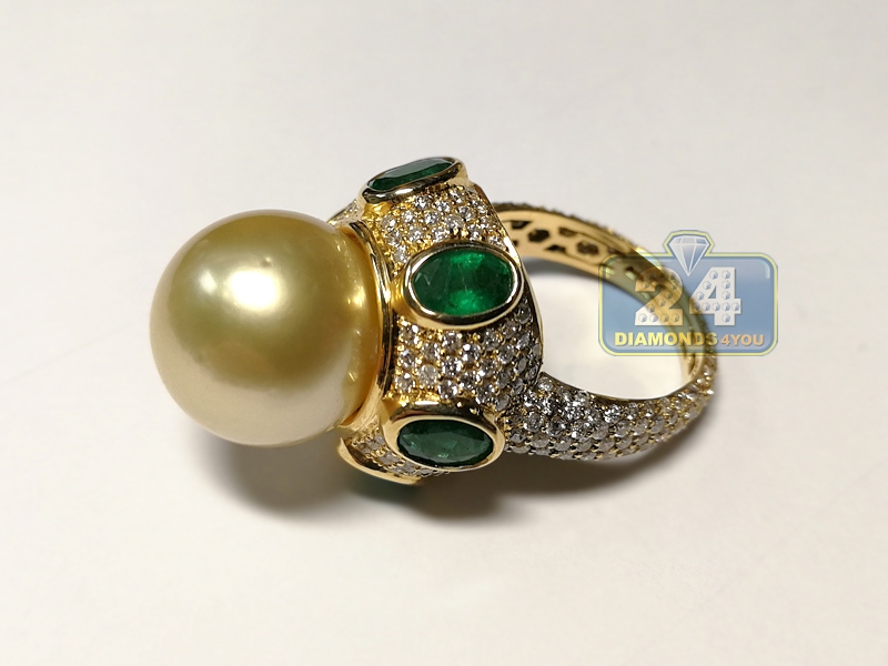 18K Yellow Gold 4.80 ct Diamond Emerald 14 mm Pearl Ring