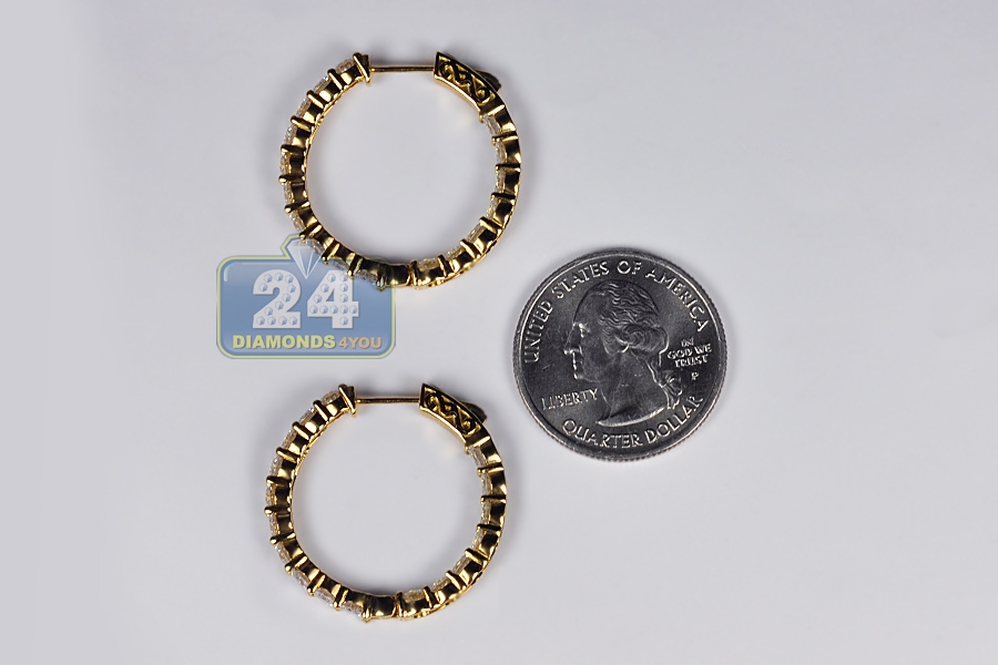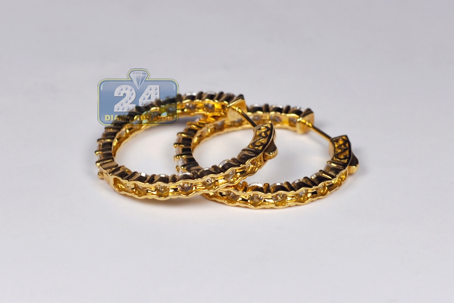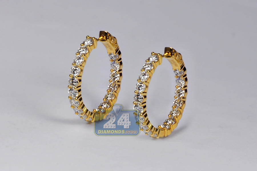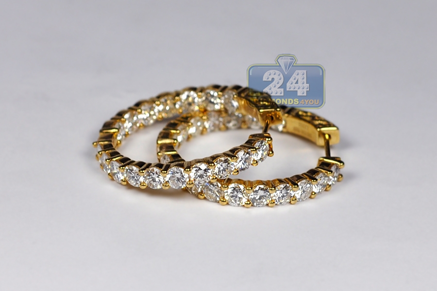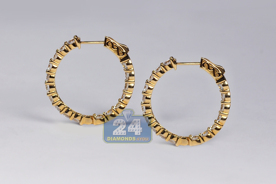 18K Yellow Gold 5.22 ct Inside Out Diamond Womens Hoop Earrings