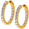 This upscale pair of diamond hoop earrings shows off your taste of luxury! They're ably crafted in warm 18k yellow gold, and highly polished to add ultra sparkling finish. Both inside and outside parts are amazed with icy white round brilliant-cut natural diamonds totaling 5.23 carats. The pieces measure 27 mm in height and 3.5 mm in width. They're closed with a user-friendly hinged snapbacks. These women's round hoops will add captivating sparkle to your look!