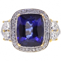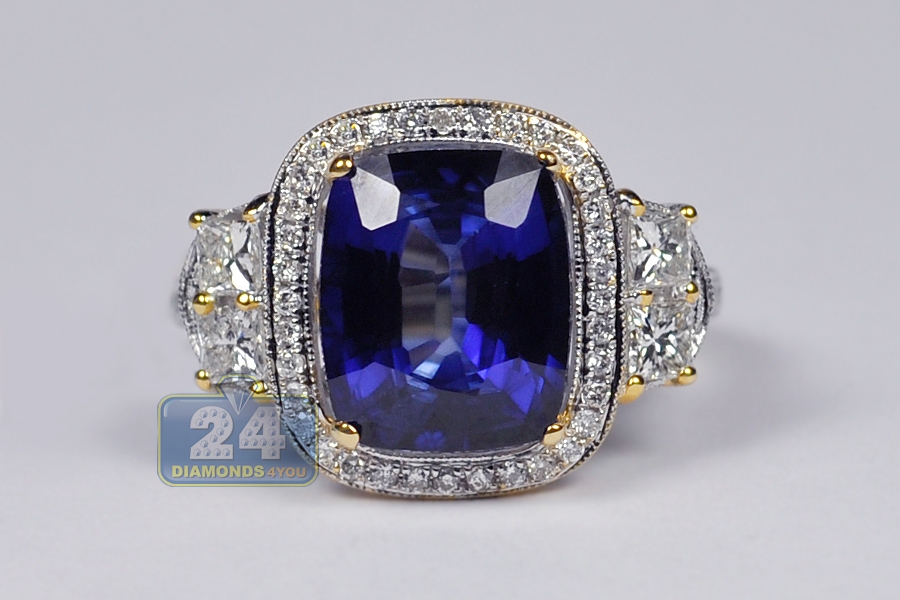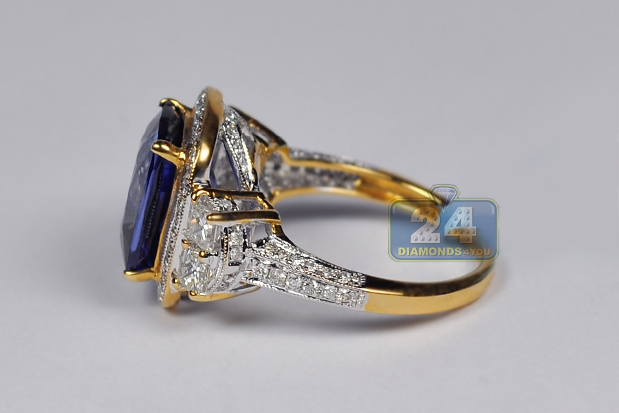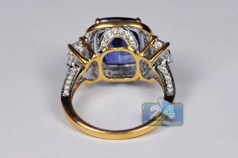 18K Yellow Gold 6.03 ct Blue Sapphire Diamond Womens Ring