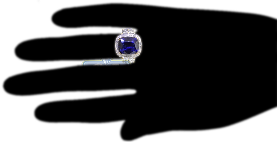 Here is lady's diamond gemstone ring to refresh your jewelry collection! Gorgeously made of warm 18k yellow gold, it has highly polished smooth finish with white rhodium accents. The center features octagon-cut diffused blue natural sapphire of 4.76 carats that surrounded by white princess-, round brilliant-cut diamonds (1.27 carat). The top measures 16 mm in width, and the shank is 2 mm. This women's halo ring can be perfect as an engagement piece or as a stunning complement to evening events!