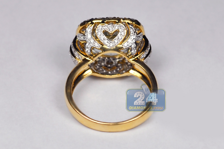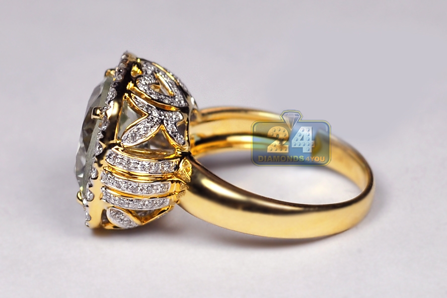 18K Yellow Gold 6.06 ct Green Amethyst Diamond Womens Ring