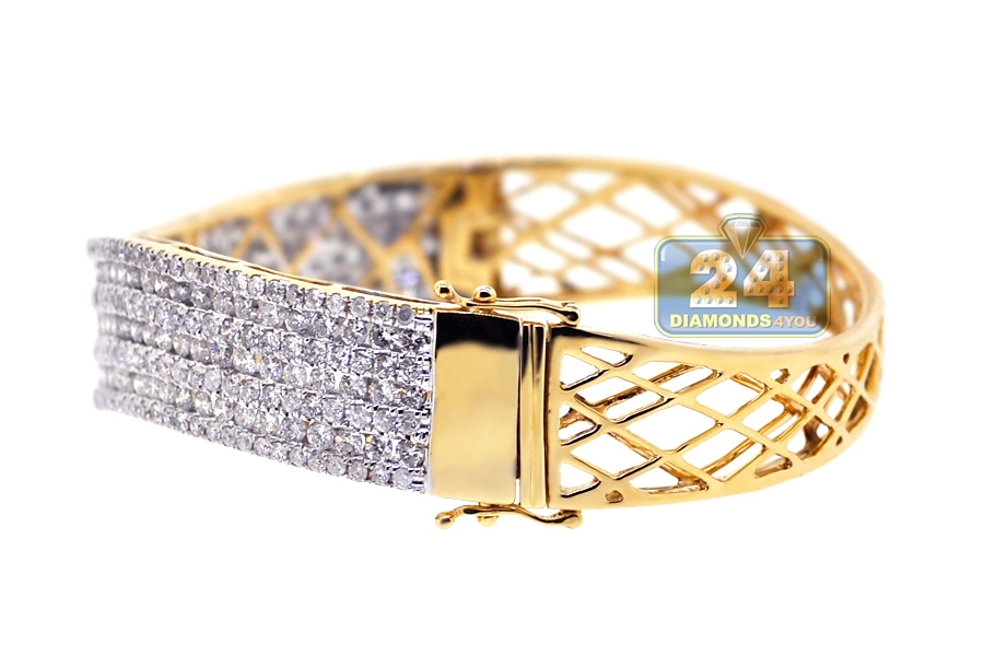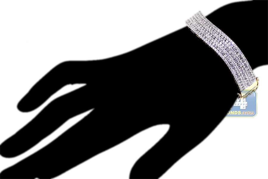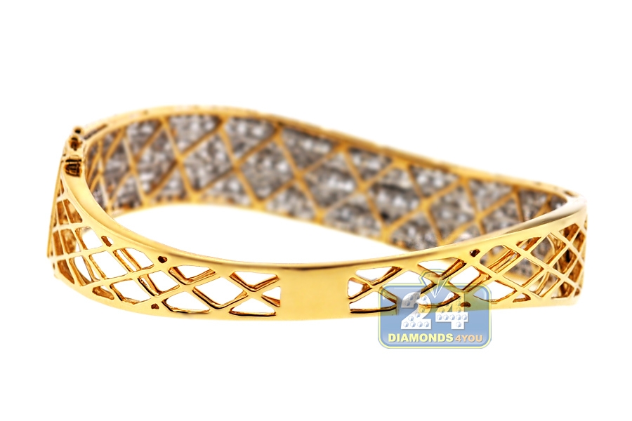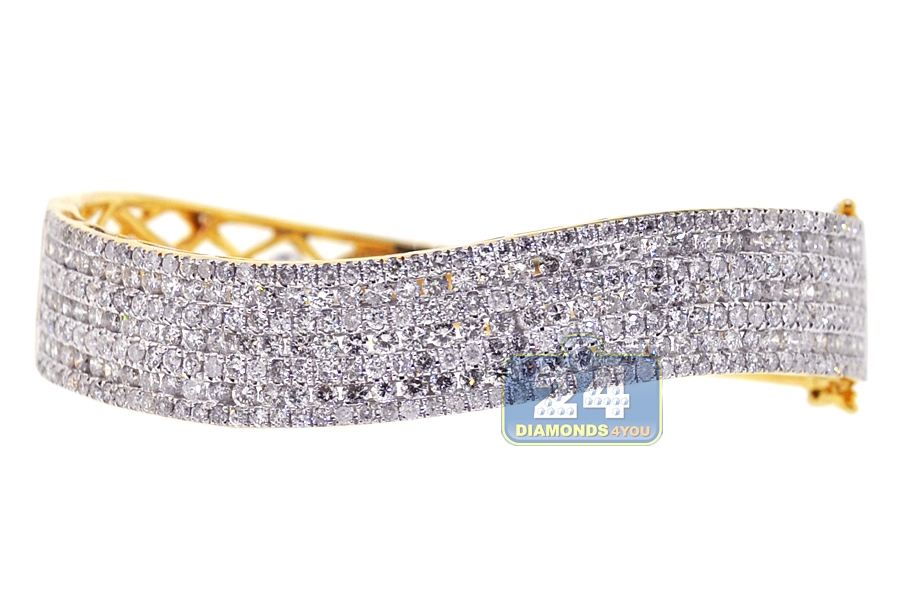 18K Yellow Gold 7.51 ct Diamond Wave Womens Bangle Bracelet