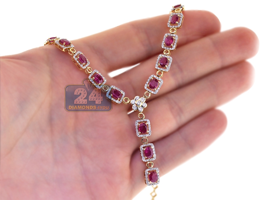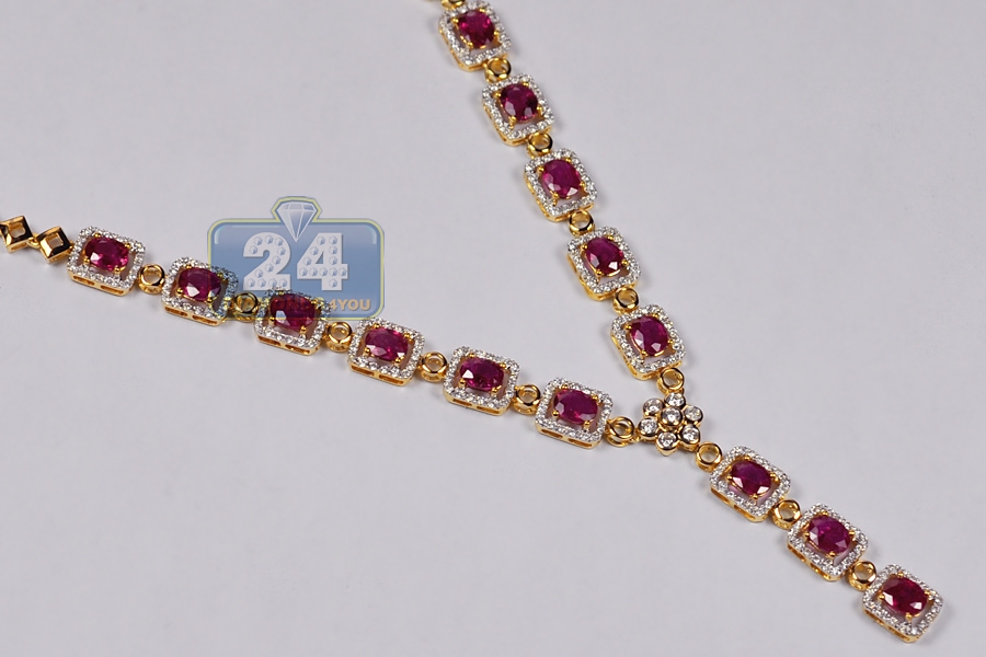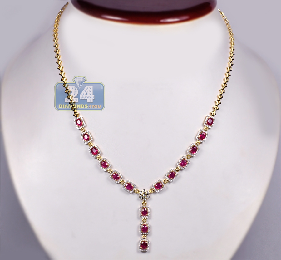 18K Yellow Gold 7.54 ct Ruby Diamond Womens Y Shape Necklace