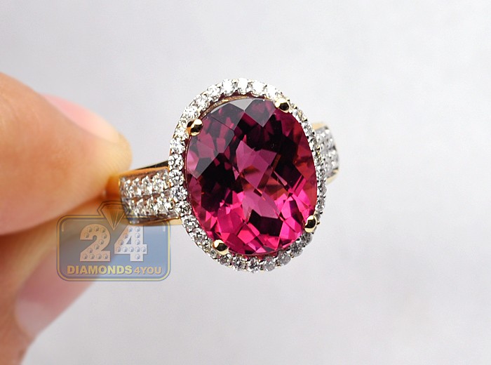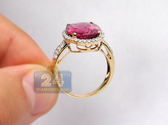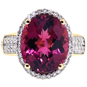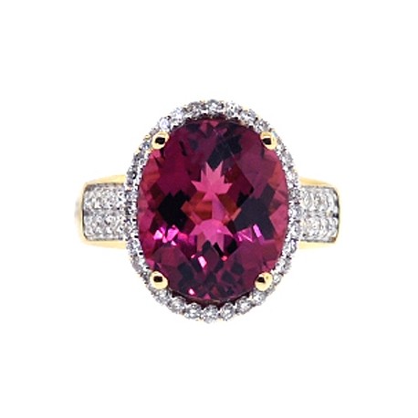 18K Yellow Gold 8.32 ct Pink Tourmaline Diamond Cocktail Ring