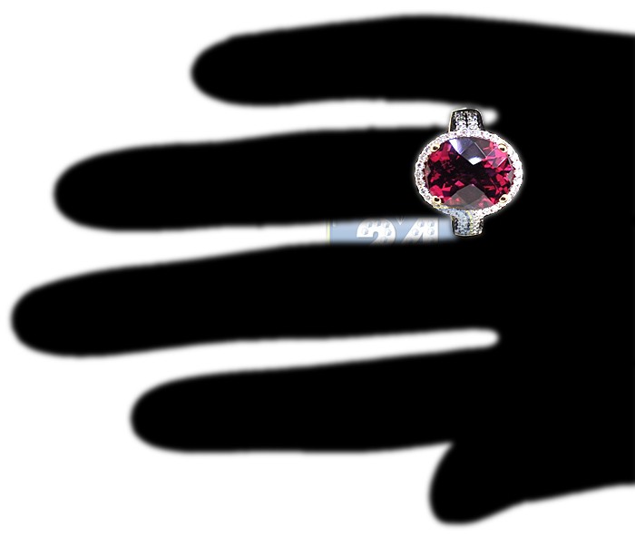 Our majestic women's cocktail ring is designed specially for gemstone lovers! The halo style ring is artfully crafted in warming 18k yellow gold with high polished finish. The gemstone ring features a natural pink oval shape tourmaline (14 x 12 mm) in the center and gleaming white round brilliant-cut diamonds around and on the sides. Shimmering and eye clean brilliants are gorgeously contrasting with genuine gemstone and classic gold color. This diamond tourmaline ring is definitely a must have if you love pink gems mixed with diamonds!